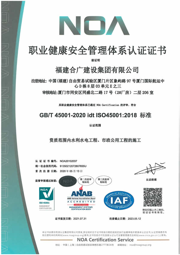 福建合廣建設集團有限公司,注冊資本5188萬元人民幣,公司位于廈門市同安區鳳山一里151-17號。本公司成立于2013年,公司具備市政公用工程、水利水電工程、房屋建筑工程、公路工程、園林綠化等多專業施工資質。企業從業人員100多人,各類專業技術人員70多人,其中高級職稱8人,中級職稱40多人,一級建造師6人,二級建造師15多人。